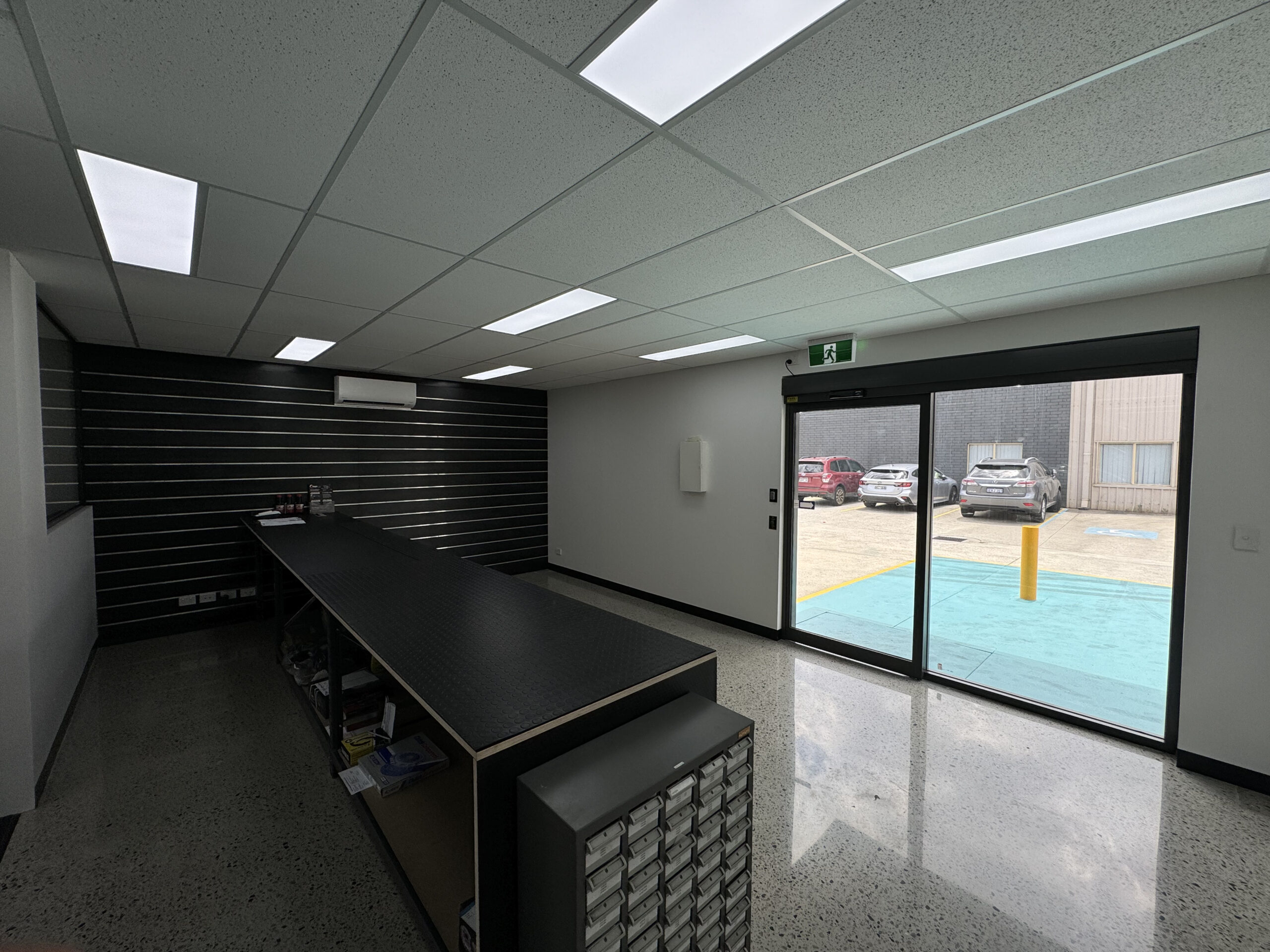 The fit-out included a trade counter and sales area with a customer waiting area below the mezzanine, a new dedicated customer-only entrance via a fully automated glass door, and offices for the Clutch and Brake team.